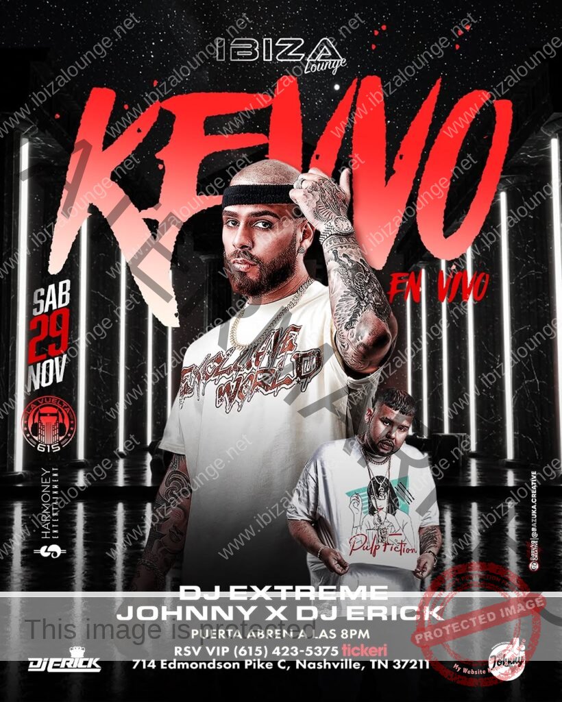 Prepárate para una noche encendida de reggaetón y trap latino con @kevvoofficial en vivo, este sábado 29 de noviembre en IBIZA Lounge 🔥